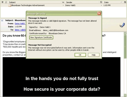 Bloombase Message integrate seamlessly with enterprise e-marketing systems to sign corporate announcements and e-marketing news using international standard S/MIME signature.